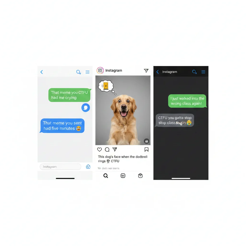 In captions or comments, “CTFU” often adds a funny or sarcastic tone to memes or viral videos.
